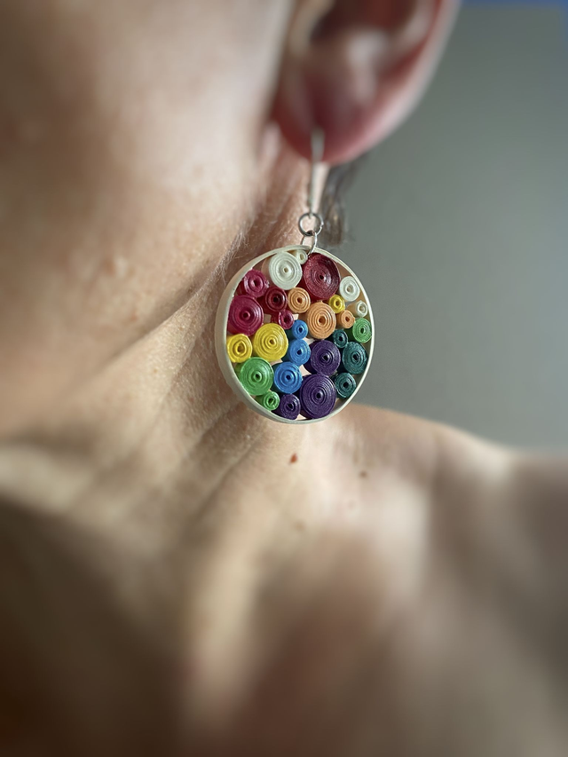 J’adore expérimenter avec les formes et les couleurs. Je m’inspire des boucles d'oreilles en d'autres matières, et je transpose ces idées dans le papier pour créer des modèles toujours plus originaux.