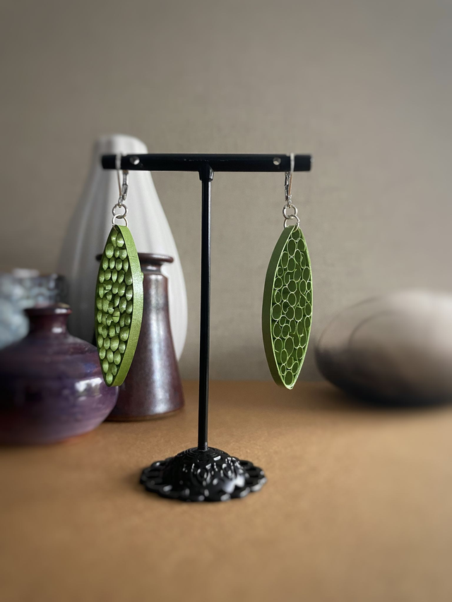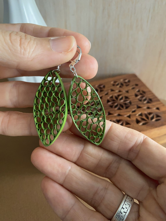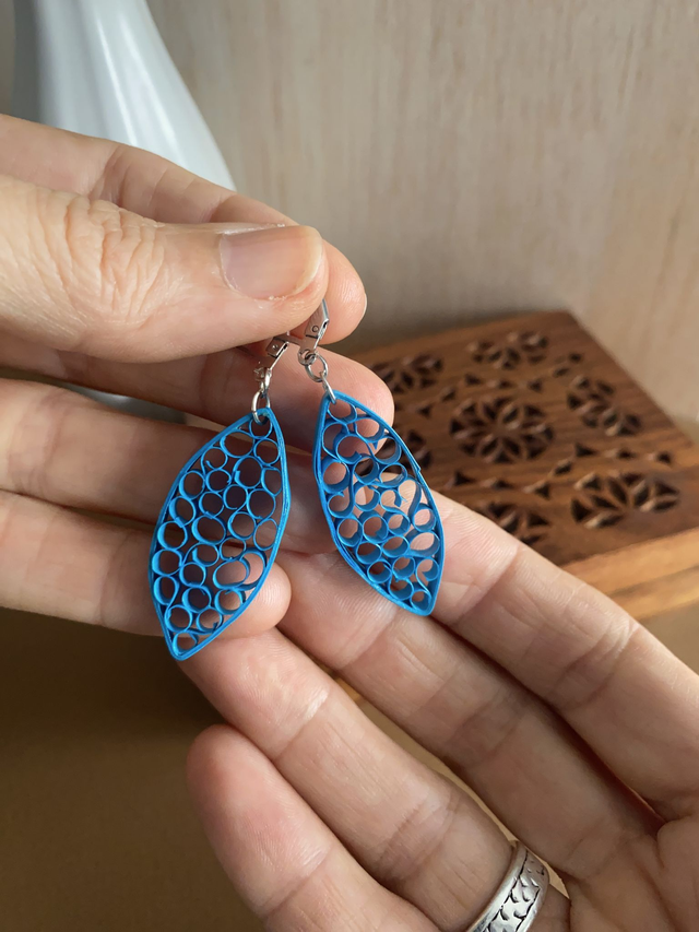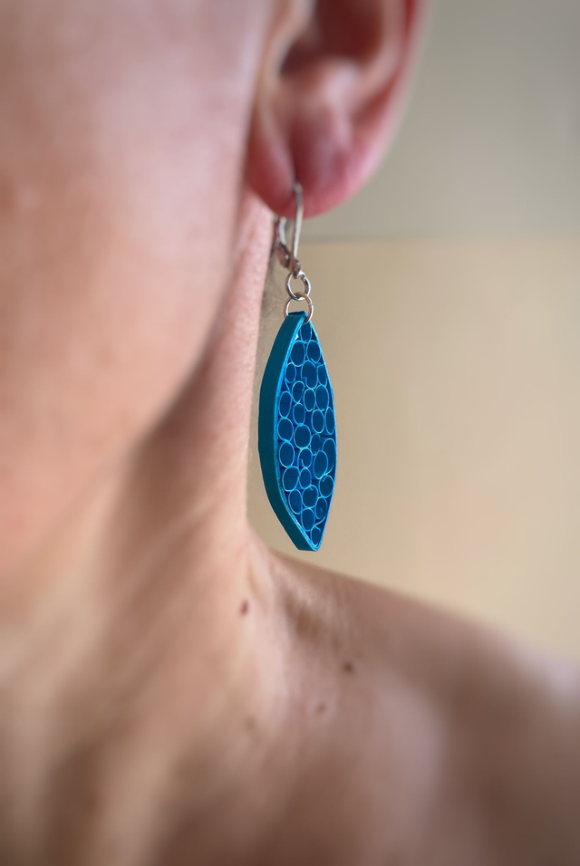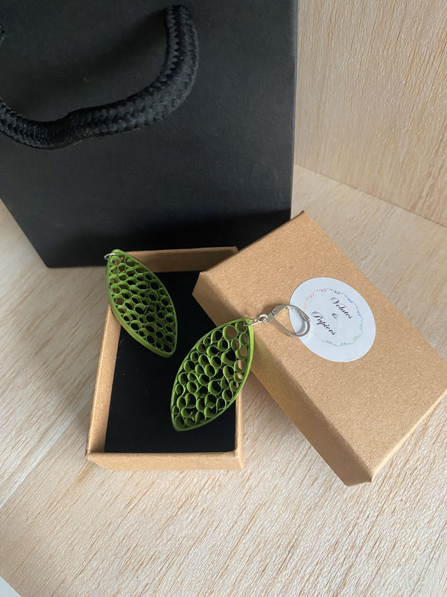 Chaque paire de boucles d'oreilles est réalisée à la main avec des bandes de papier roulé selon la technique du quilling, rendant chaque modèle unique. Il peut y avoir de petites variations d’une boucle à l’autre, ce qui fait leur charme.
