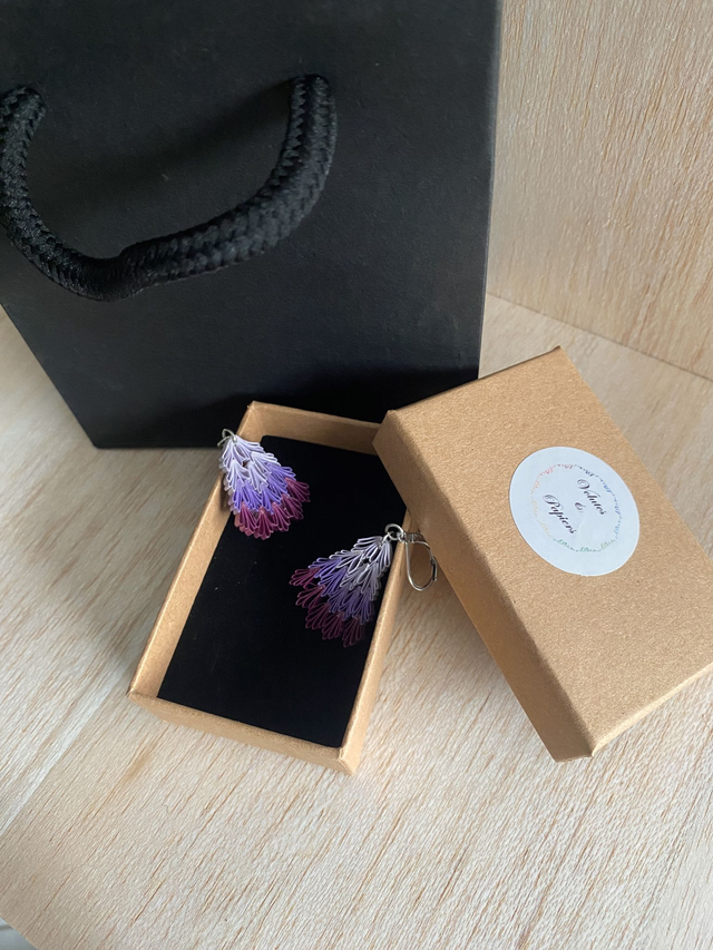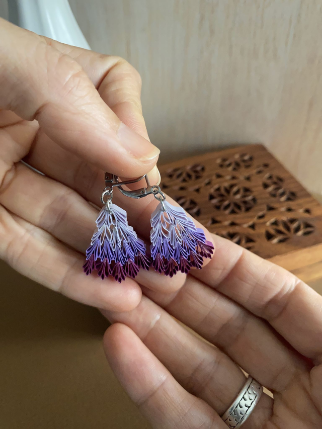 Chaque paire de boucles d'oreilles est réalisée à la main avec des bandes de papier roulé selon la technique du quilling, rendant chaque modèle unique. Il peut y avoir de petites variations d’une boucle à l’autre, ce qui fait leur charme.